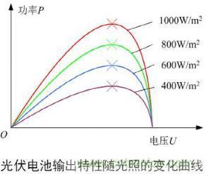 如圖所示可見(jiàn)光照強(qiáng)度和溫度下降都會(huì)導(dǎo)致光伏電池的最大功率點(diǎn)下移