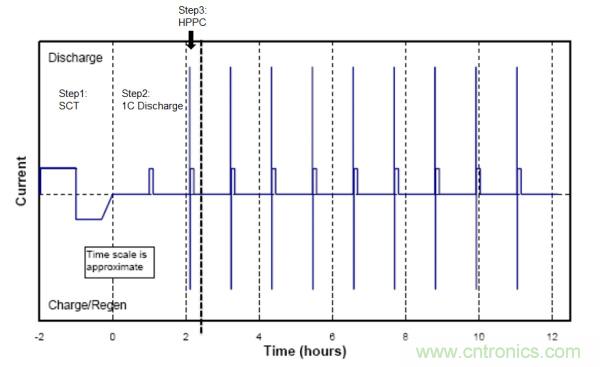 那么RPT測試需要包含哪些內(nèi)容呢?首先容量衰減和內(nèi)阻的增大是電池衰減的主要指標(biāo),其次RPT測試過程要盡量的簡潔,否則可能出現(xiàn)冗長的檢測過程造成了壽命影響因子的失真。一般情況下RPT測試由一次常溫靜態(tài)容量測試(SCT)和某個特定SOC點(diǎn)下的混合脈沖功率性能測試(HPPC)組成。 這樣即可快速的獲取電池容量和內(nèi)阻這兩個關(guān)鍵參數(shù)。