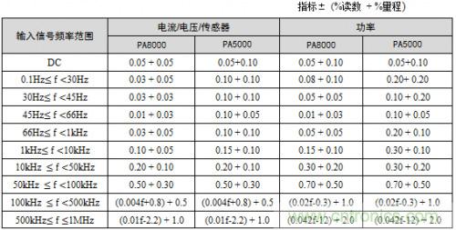 圖1.PA8000/PA5000功率分析儀5A功率板卡精度表