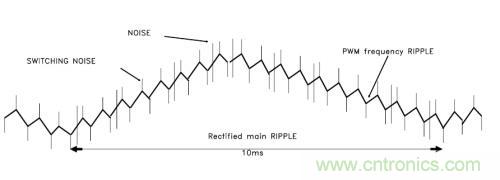 --工頻噪聲(Recfified main RIPPLE),一般是交流供電頻率的兩倍。我國供電頻率是50Hz,所以它的紋波主要來自工頻50Hz變壓器。大小取決于整流電路的類型。對于半波整流,50Hz;對于全波整流,是100Hz;對于三相全波整流,300Hz。