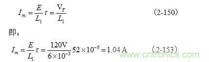 根據(jù)上面分析,以及圖2-55和圖2-56,正常工作時(shí),流過高壓包初級(jí)線圈的最大電流Im不應(yīng)該超過極限電流值Imax的70%,由此,可以求得流過高壓包初級(jí)線圈的極限電流Imax為1.49 A 。