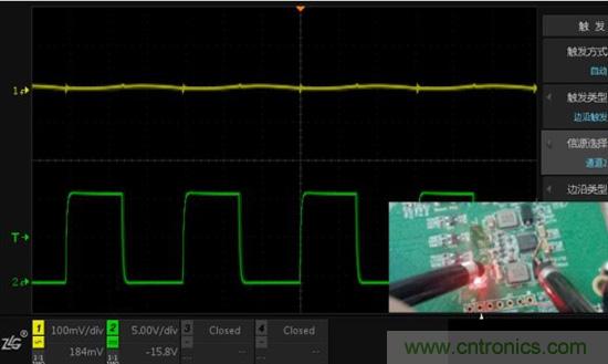 夾子測(cè)量電源輸出,CH2懸空