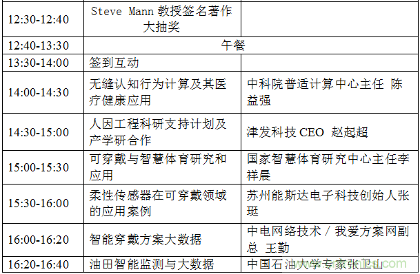 Wearable2017技術(shù)與產(chǎn)業(yè)論壇將從可穿戴和人機(jī)交互技術(shù)的起源,發(fā)展和應(yīng)用,探討前沿技術(shù)和服務(wù)社會(huì)的創(chuàng)新結(jié)合,Steve Mann教授將分享人本智能,可穿戴與物聯(lián)網(wǎng)全新的架構(gòu),其他演講嘉賓和主題包括:加拿大工程院士姜晶分享VR和AR在工業(yè)的應(yīng)用,國(guó)家千人專家,安進(jìn)醫(yī)療董事長(zhǎng)趙偉分享物聯(lián)網(wǎng)技術(shù)與產(chǎn)業(yè)的創(chuàng)新融合,中國(guó)可穿戴領(lǐng)域最早的開拓者陳東義老師談可穿戴與AR在工業(yè)領(lǐng)域的應(yīng)用,中科院普適計(jì)算研究中心主任陳益強(qiáng)分享殘疾人的遠(yuǎn)程交互及可穿戴在醫(yī)療健康領(lǐng)域的應(yīng)用,蘇州能斯達(dá)電子科技創(chuàng)始人張珽介紹創(chuàng)新的柔性壓力傳感器在可穿戴領(lǐng)域的應(yīng)用案例,我愛方案網(wǎng)聯(lián)合創(chuàng)始人王勤分享智能穿戴和人工智能方案大數(shù)據(jù),中國(guó)石油大學(xué)專家張衛(wèi)山分享油田檢測(cè)與大數(shù)據(jù)。關(guān)于前沿技術(shù)和創(chuàng)新趨勢(shì)的領(lǐng)袖對(duì)話論壇,嘉賓包括國(guó)家體育總局智慧研究中心的李祥晨主任,海爾集團(tuán)科技專家,中科院深圳先進(jìn)技術(shù)研究院醫(yī)工所副所長(zhǎng)王磊,中興養(yǎng)老健康CEO蘆東昕和易瞳科技CTO艾韜等。7月28日在深圳的論壇現(xiàn)場(chǎng)將有十多個(gè)創(chuàng)新的可穿戴醫(yī)療健康和VR/AR的產(chǎn)品展示,各方資源將共同成立可穿戴與VR/AR的創(chuàng)新中心。