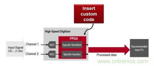另一方面,數(shù)字化儀依靠計(jì)算機(jī)上的應(yīng)用軟件來完成大量分析。一些數(shù)字化儀允許訪問板載 FPGA(現(xiàn)場(chǎng)可編程門陣列),因此可以在儀器中添加自定義代碼、濾波器、校正或數(shù)據(jù)壓縮方案。這樣的例子包括向輸出添加算數(shù)運(yùn)算,或隨附查詢表來更改輸出。在某些情況下,您可能需要將自定義 IP 添加到儀器中來執(zhí)行特殊功能。在儀器 FPGA 中添加定制功能可以增加儀器功能、降低成本、縮短開發(fā)時(shí)間,還可以提高測(cè)量速度。它也可以用于計(jì)算,所以您只需要處理數(shù)據(jù)輸出即可,減少了要管理的數(shù)據(jù)量。