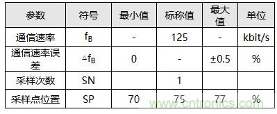 表1.LS_CAN通信速率與采樣點參數(shù)