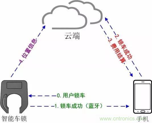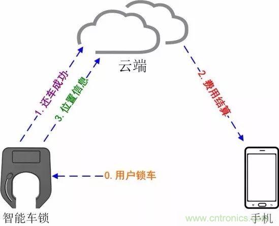 3.智能鎖在用戶還車后將位置信息的上報(bào)。(步驟3)