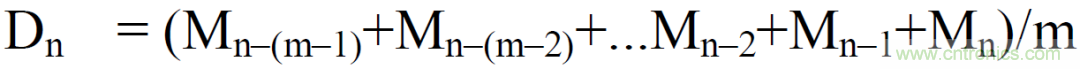 移動平均法,用戶可設定移動個數對電壓或電流有效值、有功功率的瞬時值(采樣數據)進行移動平均,其原理是采集N個信號之后對這些數據求平均,其中移動個數N可以手動設置,移動個數設置值越大測量值越穩(wěn)定,同樣對輸入變化的響應速度也就越慢,該平均方法多用于信號本身存在波動的情況,比如因負載波動導致信號本身波動,就建議用移動平均,移動平均公式如下: