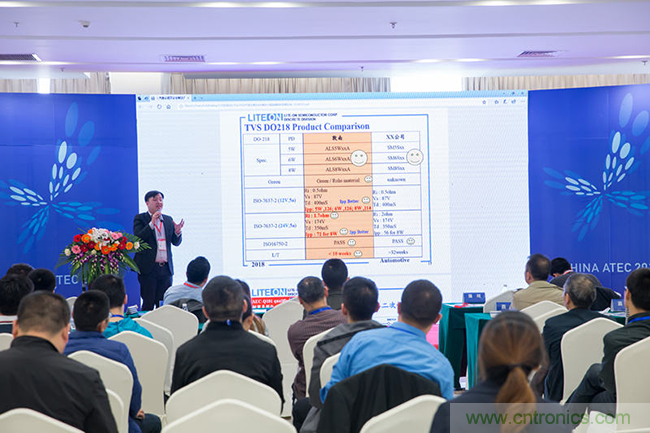 光寶集團(tuán)敦南科技股份有限公司分離式元件事業(yè)部汽車電子產(chǎn)品部資深經(jīng)理張峰銘精彩分享汽車模塊拋負(fù)載的解決方案。