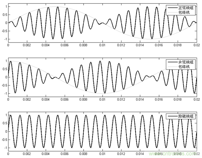 圖2:正余弦旋轉(zhuǎn)變壓器的勵磁波形及正余弦繞組輸出波形