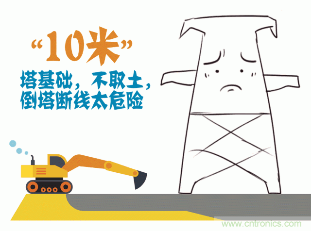 3、“10米” ——塔基礎 不取土 倒塔斷線太危險