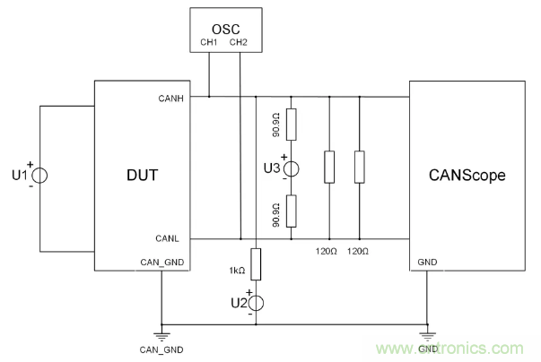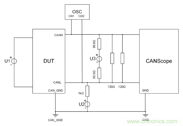 圖3:CANDT設(shè)備隱性輸入電壓限值測(cè)試原理框圖