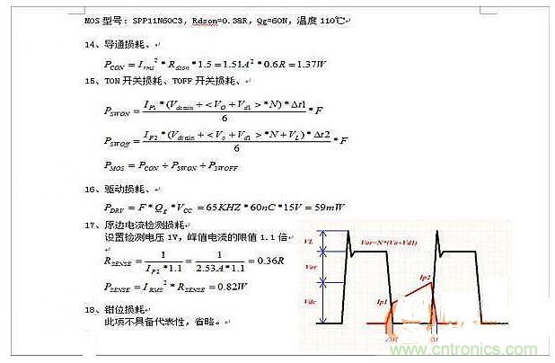 如果RCD消耗的功率特別大,應(yīng)該是別地地方出了問題??刂骗h(huán)路的問題很難說明白,建議參考《開關(guān)電源手冊(cè)》第三部分,第八章,特別是P435頁(yè)提到的方法三(最后兩行文章)。這里多說一句,在分析了眾多大師的作品之后,發(fā)現(xiàn)他們似乎非常喜歡這么干。