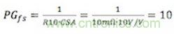 LM25116評(píng)估板的功率級(jí)跨導(dǎo)由10mΩ的電流檢測(cè)電阻(R11)和電流檢測(cè)放大器增益(10)設(shè)定,并滿(mǎn)足10A的電流極限。最終的功率級(jí)跨導(dǎo)等于: