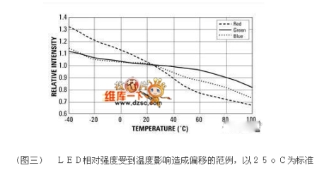 另一點(diǎn)相當(dāng)重要,同時(shí)必須注意的是,當(dāng)LED使用時(shí)間越久,光輸出強(qiáng)度就會(huì)降低,因此經(jīng)過一段時(shí)間后,RGB?。蹋牛南到y(tǒng)的最大可輸出亮度將會(huì)下降,雖然在大部分的應(yīng)用事實(shí)上都可以接受逐漸且穩(wěn)定的亮度衰減,但有時(shí)無法接受的是RGB發(fā)光系統(tǒng)色度的變化,ASSP擁有能夠穩(wěn)定控制RGB發(fā)光系統(tǒng)光度衰減的功能,例如維持色度的穩(wěn)定在一定的容忍度內(nèi),甚至當(dāng)最高可輸出亮度下降時(shí)。