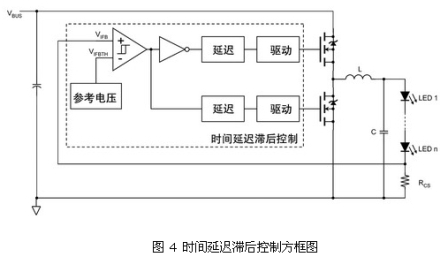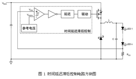 接地參考的傳感電阻簡化了電流傳感電路,但在降壓轉(zhuǎn)換器中需要高壓驅(qū)動電路。要避免使用隔離變壓器,在設計中必須選擇高邊檢測和低電壓驅(qū)動電路,或者低邊檢測和高壓驅(qū)動電路。實現(xiàn)后者的一種有效方法是,采用有時間延遲滯后控制的高壓降壓驅(qū)動電路(見圖 1)。