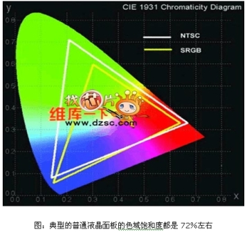 色域的呈現(xiàn)主要在背光的選擇上,眾所周知,液晶面板本身并不發(fā)光,而是必須透過背光的光線才能夠顯示畫面,傳統(tǒng)CCFL燈管在螢光材質(zhì)上的限制,紅光呈現(xiàn)能力偏弱,加上所搭配的彩色濾光片的混色效果較差,最終呈現(xiàn)的色域飽和度不佳,導(dǎo)致目前主流的LCD監(jiān)視器或電視在色域呈現(xiàn)能力上不足,多僅能達(dá)到72%NTSC左右。