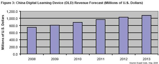 - 2008年的數(shù)碼學(xué)習(xí)設(shè)備(DLD)的銷(xiāo)售額為7.494億美元,2013年將上升到11億美元
