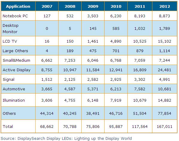 Source: DisplaySearch Display LEDs: Lighting up the Display World