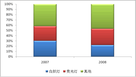 圖:2007-2008年中國電光源市場結(jié)構(gòu)比例圖