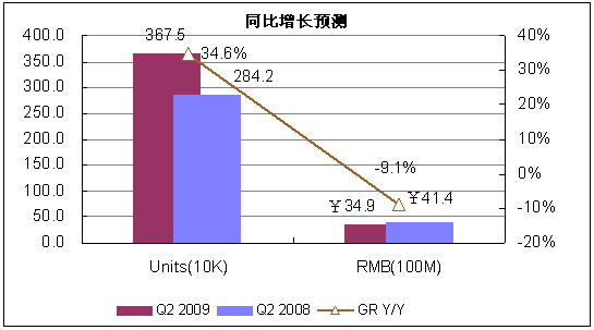2009年第二季度,由于市場淡季來臨,需求動力不足。賽迪顧問預測,第二季度市場銷量為367.5萬臺。
