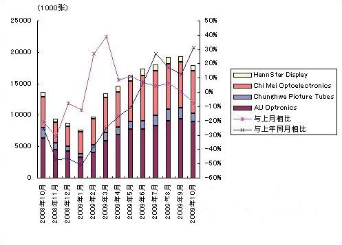 - 2009年10月臺(tái)灣大尺寸液晶面板供貨量比上月減少7.5%,為1788萬(wàn)塊
