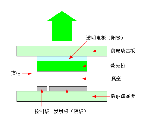 由于金屬電極是沿著同一塊玻璃基板排列,所以剛發(fā)射出來的電子是在玻璃基板表面?zhèn)鲗?dǎo)的,這是這種器件被命名為表面?zhèn)鲗?dǎo)電子發(fā)射顯示器的原因,這也是SED顯示器與其它場致發(fā)射顯示器的主要區(qū)別。SED電視目前的最大亮點(diǎn)是畫質(zhì)好,它的解析度與液晶電視基本相同,而灰度表現(xiàn)力,可視角度,色域范圍,動態(tài)畫面表現(xiàn),暗部細(xì)節(jié)表現(xiàn)力等,均可達(dá)到高級的CRT電視水平。由于SED生產(chǎn)技術(shù)基本上被東芝公司壟斷,因此,SED顯示器在未來十幾年內(nèi)不可能發(fā)展成為主流產(chǎn)品。圖7是SED顯示器的工作原理。
