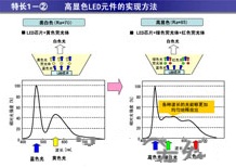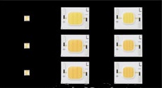 - 第一類在底板上配備多個LED芯片,輸入功率為0.5W時實現(xiàn)了38lm,顯色指數(shù)為85