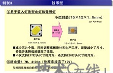 - 第二類產(chǎn)品在底板上配備幾十個輸出功率比較低的LED芯片,并設(shè)置了布線端子