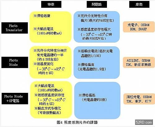 以上介紹照度感測元件的技術(shù)發(fā)展態(tài)勢。由于行動(dòng)電話與液晶電視的普及化,追求更高的影像畫質(zhì)同時(shí)降低液晶顯示器的耗電量,已經(jīng)成為相關(guān)業(yè)者必需克服的課題。