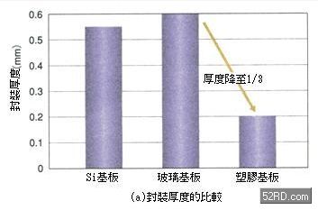 有關(guān)封裝薄形化的發(fā)展,以TDK與半導(dǎo)體能源研究所共同開發(fā)的照度感測元件為例,它是採用塑膠材料當(dāng)作基板,開發(fā)厚度只有與「0402size」、「0603size」等被動(dòng)元件同等級的照度感測元件;相較之下傳統(tǒng)玻璃基板的照度感測元件卻高達(dá)(圖8),該公司也在開發(fā)內(nèi)建可以使光電流增幅100倍增幅電路的PhotoIC,外形尺寸則與「2015size」同等級(圖8(b))。