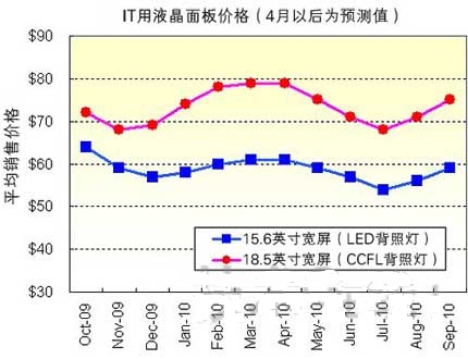 圖1:IT用液晶面板價格走勢(4月以后為預(yù)測值)