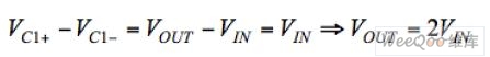 在第二個階段,開關(guān)S3和S4關(guān)閉,而S1和S2打開。因為電容兩端的電壓降不能立即改變,輸出電壓突變到輸入電壓值的兩倍︰
