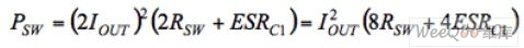 電荷泵的寄生效應(yīng)導(dǎo)致輸出電壓隨著負載電流的增加而下降。事實上,總是存在2IOUT的RMS電流流過C1和兩個開關(guān)(2Rsw),導(dǎo)致產(chǎn)生以下的功耗︰
