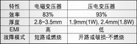 磁性變壓器和壓電變壓器的發(fā)展使我們可以構(gòu)造出高效、小體積轉(zhuǎn)換器。變壓器的選擇取決于多種因素,其中包括成本、體積和效率。例如,同PZT變壓器相比,在一個(gè)給定的功率水平,磁性變壓器可能更厚、更重且效率更低,但它具有成本低,而且可以在更寬的負(fù)載條件下工作的優(yōu)點(diǎn)。PZT變壓器具有固有的正弦運(yùn)行特性、高激發(fā)電壓、不可燃和無(wú)電磁噪聲的優(yōu)點(diǎn)。磁性變壓器和壓電變壓器的比較見(jiàn)表1所示。