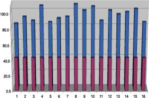 圖1點(diǎn)校正前的LED亮度與正向電流直方圖[page]