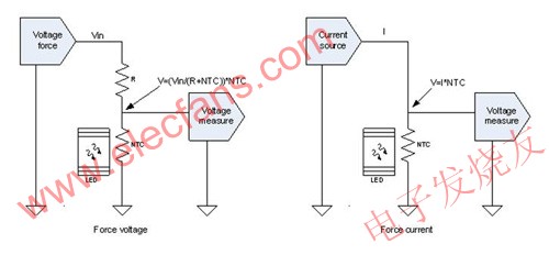 就改進(jìn)操作、提高安全性而言,這兩種監(jiān)控LED燈溫度的方法實(shí)施起來都很簡單直接。圖1是使用LED作為升溫源頭的這兩種方法的原理圖。