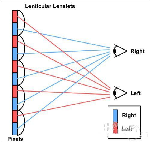 柱狀透鏡(LenticularLens)技術(shù)也被稱為雙凸透鏡或微柱透鏡3D技術(shù),其最大的優(yōu)勢便是其亮度不會受到影響。柱狀透鏡3D技術(shù)的原理是在液晶顯示屏的前面加上一層柱狀透鏡,使液晶屏的像平面位于透鏡的焦平面上,這樣在每個柱透鏡下面的圖像的像素被分成幾個子像素,這樣透鏡就能以不同的方向投影每個子像素。于是雙眼從不同的角度觀看顯示屏,就看到不同的子像素。不過像素間的間隙也會被放大,因此不能簡單地疊加子像素。讓柱透鏡與像素列不是平行的,而是成一定的角度。這樣就可以使每一組子像素重復(fù)投射視區(qū),而不是只投射一組視差圖像。