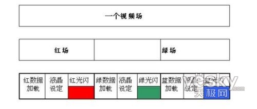 想要直接用RGB的LED來取代濾色片看上去好像很簡單,其實(shí)是不可能的。因?yàn)闉V色片是把每一個(gè)像素都分成三種不同顏色的子像素,如果直接用三種顏色的LED來取代濾色片,就必須采用小到和子像素尺寸一樣大的LED來照射每一個(gè)子像素,才不會(huì)使紅光照到綠光的子像素上。這樣,LED的個(gè)數(shù)就要幾百萬個(gè)之多。為維持像素?cái)?shù)不變,唯一的方法是重復(fù)使用這些像素,也就是采用時(shí)分復(fù)用制。這樣只要順序地發(fā)射出紅光、綠光、藍(lán)光,同時(shí)控制每個(gè)像素的薄膜晶體管(TFT),使其相應(yīng)地按照該像素在這種顏色時(shí)所應(yīng)當(dāng)具有的的強(qiáng)度來開啟液晶光閥。但是,要順序地發(fā)出紅、綠、藍(lán)三種顏色,并能形成一個(gè)彩色的視頻圖象,就必須利用人眼的視覺殘留作用。只要這三種顏色順序重復(fù)的周期小于人眼的視覺殘留時(shí)間,就可以在人們的大腦中形成一個(gè)彩色的圖象。視覺殘留時(shí)間實(shí)際上就是電視的場(chǎng)頻周期,在PAL制中為五十分之一秒。這也就要求在五十分之一秒的時(shí)間內(nèi)必須完成紅、綠、藍(lán)三個(gè)圖象的顯示。因此,這種方式被稱為“場(chǎng)順序”體制,也有人稱之為“色順序”體制。