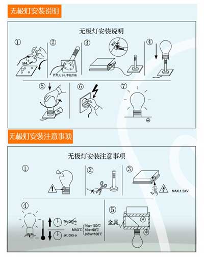 2)工作時(shí)環(huán)境溫度不得超過50℃; 3)必須與無極熒光燈燈泡正確連接后,方可接通電源;