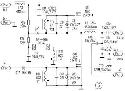 逆變電路如圖3,它將PFC電路輸出的高壓直流變換為供無極燈使用的高頻交流電。國際電工委員會CISPR15允許對磁場感應標準的頻率范圍為2.2MHz~3.0MHz,其中心頻率為2.6MHz。接通電源后PFC輸出直流電壓.通過R19、R18加到電容C12上,C12開始充電。當C12上所充電壓達到觸發(fā)管(DI-AC)D8~D16的轉折電壓時,DIAC由關斷轉為導通狀態(tài)。積分電容C12所儲存的電荷經DIAC加于振蕩變壓器BT1的初級繞組W20,依靠W22、W21兩個繞組使Q81、Q82獲得幅度相等,相位相差180°的驅動信號。在Q82導通時Q81被強迫關斷截止;Q81導通時,Q82又被強迫關斷截止。