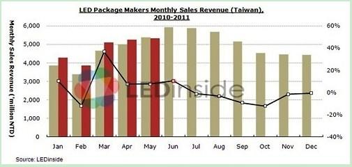 - 5月份,LED產(chǎn)業(yè)營收表現(xiàn)不如預(yù)期