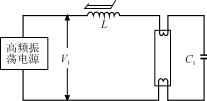 電子鎮(zhèn)流器的啟動(dòng)電壓是由限流電感L和啟動(dòng)電容C1組成的L-C1串聯(lián)諧振電路在C1兩端產(chǎn)生的諧振電壓。簡化電路如圖1所示。L-C1的品質(zhì)因數(shù)Q=1/ωC1R=ωL/R,式中R為L-C1回路的損耗電阻,ω為L-C1回路的工作角頻率。在L-C1回路對高頻振蕩電路的輸出電壓V1諧振時(shí),限流電感L或C1上的電壓VR=QV1。合理設(shè)計(jì)限流電感L和電容C1的參數(shù),可使C1上的諧振電壓VR達(dá)到使燈管點(diǎn)亮的值。陰極不進(jìn)行預(yù)熱的電路,電源一接通燈即點(diǎn)亮,這對陰極損傷很厲害,會(huì)使燈管根部很快變黑,使燈管壽命變短。
