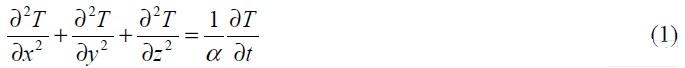 其中:T 為溫度;t 為時間;x, y, z 空間三維坐標系;α 為熱膨脹系數(shù),α 滿足方程: