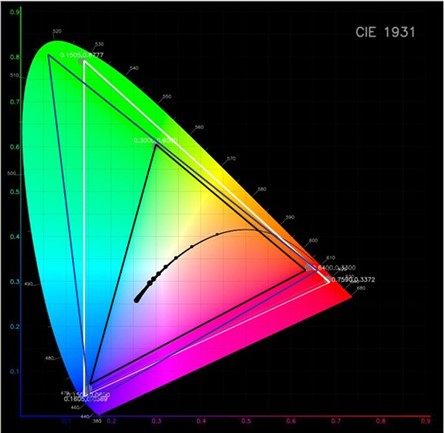 目標(biāo)色域空間的合理設(shè)定十分重要,否則,或者不能實(shí)現(xiàn),或者白平衡無法達(dá)到,或者亮度均勻度將受損。
