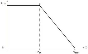 LED制造商通常在數(shù)據(jù)表中包含顯示LED最大允許正向電流和溫度的圖線,以確保部件的可靠性,這也稱為安全工作區(qū)。LED的最大電流額定值在較低溫度測得,但在超出特定溫度后,最大允許電流值降低。由于LED系統(tǒng)的首要設(shè)計要素是適當(dāng)?shù)纳岷屯L(fēng),因此很多應(yīng)用需要考慮不可預(yù)測的狀況,即使最佳的熱設(shè)計也可能無法預(yù)防這些狀況。例如大燈組件被污泥或其他碎屑堵塞的情況。由于對車輛的安全操作至關(guān)重要,因此在此類情況下,需要保持LED在較低操作點正常照明,同時使電流保持在安全工作區(qū),以預(yù)防照明系統(tǒng)的災(zāi)難性故障。