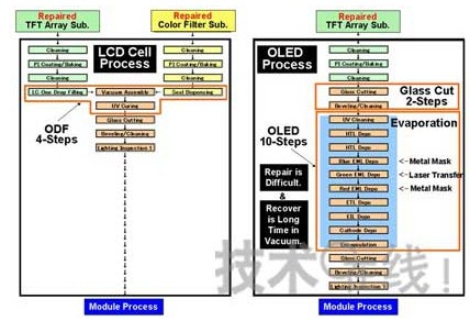 通常背光源用LED來做,因為是點光源,所以還要加上光擴(kuò)散膜工藝。如用OLED背光源,因為是面光源,擴(kuò)散膜工序就可省去,工藝成本下降可觀。2011年,三星、LG已開建用OLED做背光源的TFT-LCD新生產(chǎn)線。