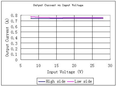 2. 升壓比要盡可能小,或者說輸入電壓要盡可能高,一般來說,升壓比越小效率越高。下面圖13是當輸出電流為0.7A輸出功率為30瓦時,SLM2842S的效率和輸入電壓的關系。
