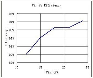 由圖中可見,如果采用12V的蓄電池,它的效率就只有90%左右,而如果改用24V的蓄電池,它的效率就可以達到94%。這就可以減少芯片的功耗,降低芯片的溫度,提高芯片的可靠性。