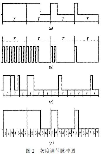 具體來說,如果每一單色像素的灰度級數(shù)為N+ 1 ,灰度級由低到高分別為0 ,1 , ..., N ,對每一級灰度規(guī)定一串N 位‘0’、‘1’控制碼與其對應(yīng),而在每一控制碼中,‘1’的總數(shù)與其對應(yīng)灰度級的編號相等,即灰度級越高,其控制碼中‘1’越多。