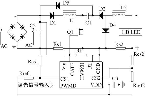 3. 2 基于HV9931 的LED 路燈驅(qū)動電路設(shè)計